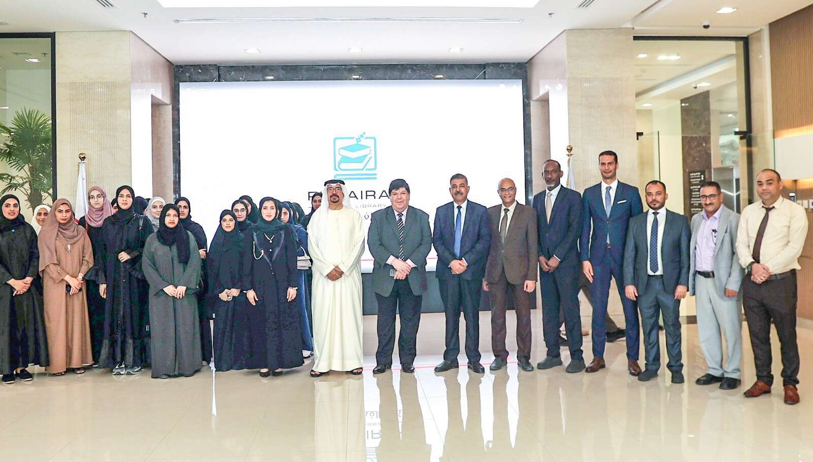 وكان في استقبال الوفد، الأستاذ الدكتور غسان القيمري مدير جامعة الفجيرة، والأستاذ الدكتور محمد فياض عميد كلية الاتصال والدكتور محمد سعيد مدير مكتبة الفجيرة الرقمية. واصطحبت الأستاذة زينب المطوع مسؤول العلاقات العامة الوفد في جولة للتعرف على أقسام المكتبة، وقدم الأستاذ محمد حسين مسؤول النظم الآلية شرحاً مفصلاً بما تزخر المكتبة به من مصادر رقمية وخدمات تكنولوجية متاحة، كما تم تسليط الضوء حول الأنشطة والفعاليات الثقافية والتعليمية التي تستضيفها المكتبة بانتظام.