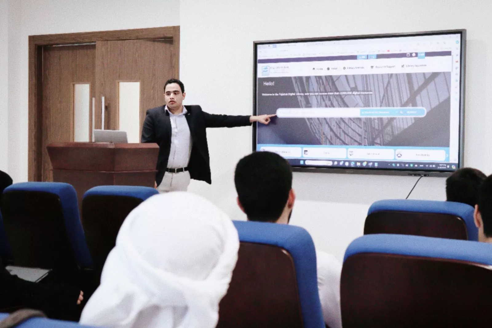 مكتبة الفجيرة الرقمية تستقبل وفداً من الدائرة المالية وجامعة العلوم والتقنية
